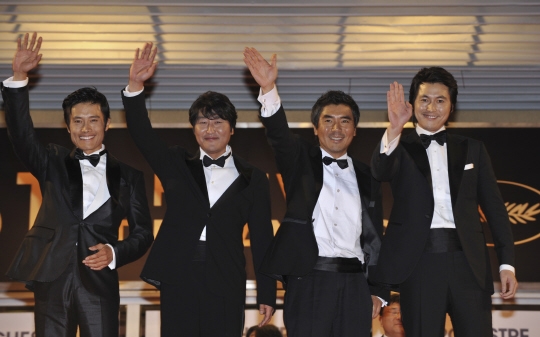 第61回カンヌ国際映画祭の非コンペティション部門に招待された同作品は、24日午後11時(現地時間)、同映画祭のメーン上映館「ルミエール大劇場」で上映された。これに先立ち、午後10時30分にキム・ジウン監督とソン・ガンホ、イ・ビョンホン、チョン・ウソンがレッドカーペットに立つと、多くのファンや取材陣から歓声が上がった。