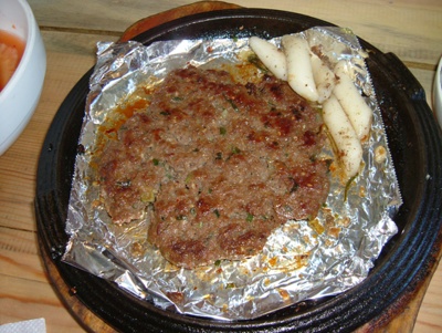 説明:骨から外して叩いたカルビに味付けをし、もう1度骨にくっつけて焼いた料理