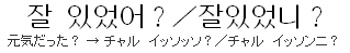 “잘 있었어?/잘 있었니? 元気してた?”を目上の人に対して使う時は“잘 있었어요? お元気でしたか?”、そして会社の上司やお年寄りなど年がかなり上の人に対しては “잘 계셨어요? お元気でいらっしゃいましたか?”というふうに使い分けます。