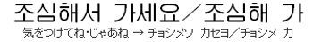 他にも、風邪引かないように気をつけて감기 조심해、足元に気をつけて발밑을 조심해というふうに使えます。