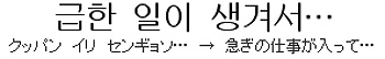 あまり気の進まない相手に誘われた時は、“급한 일이 있어서…”と言っていそいそと立ち去るとしましょうか。