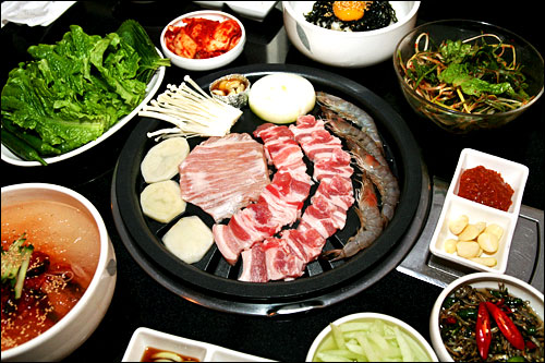 焼肉を専門とする店のメニューにならぶほか、サムギョプサル専門の店も数多く存在する。